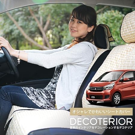 安心の日本製 座席カバー オススメ カーシート 高級 車用アクセサリー インテリア ラクラク洗える 便利グッズ ペット 子供 汚れ防止 内装パーツ 軽自動車対応 アレンジ 簡単取付フィット Ekワゴン おしゃれ 人気 デコテリア Mitsubishi 三菱 水玉 チェック ベージュ